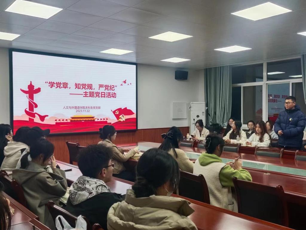 为深入开展学习贯彻习近平新时代中国特色社会主义思想主题教育,2023年11月22日太阳集团tyc4633本科生党支部开展“学党章 知党规 严党纪”主题党日活动,支部全体党员参加。