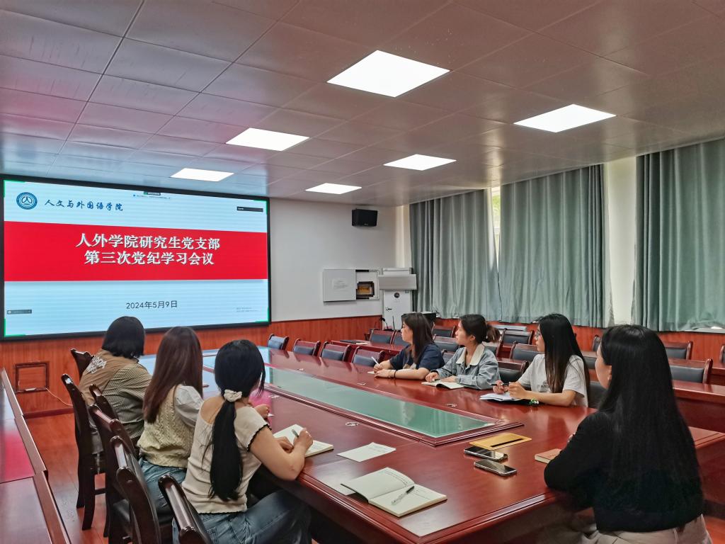 5月9日,太阳集团tyc4633研究生党支部在骊山校园2教226会议室召开第三次党纪学习教育会议,支部全体党员参加了会议,会议以线上线下相结合的方式进行,会议由党支部副书记张心雨主持。
