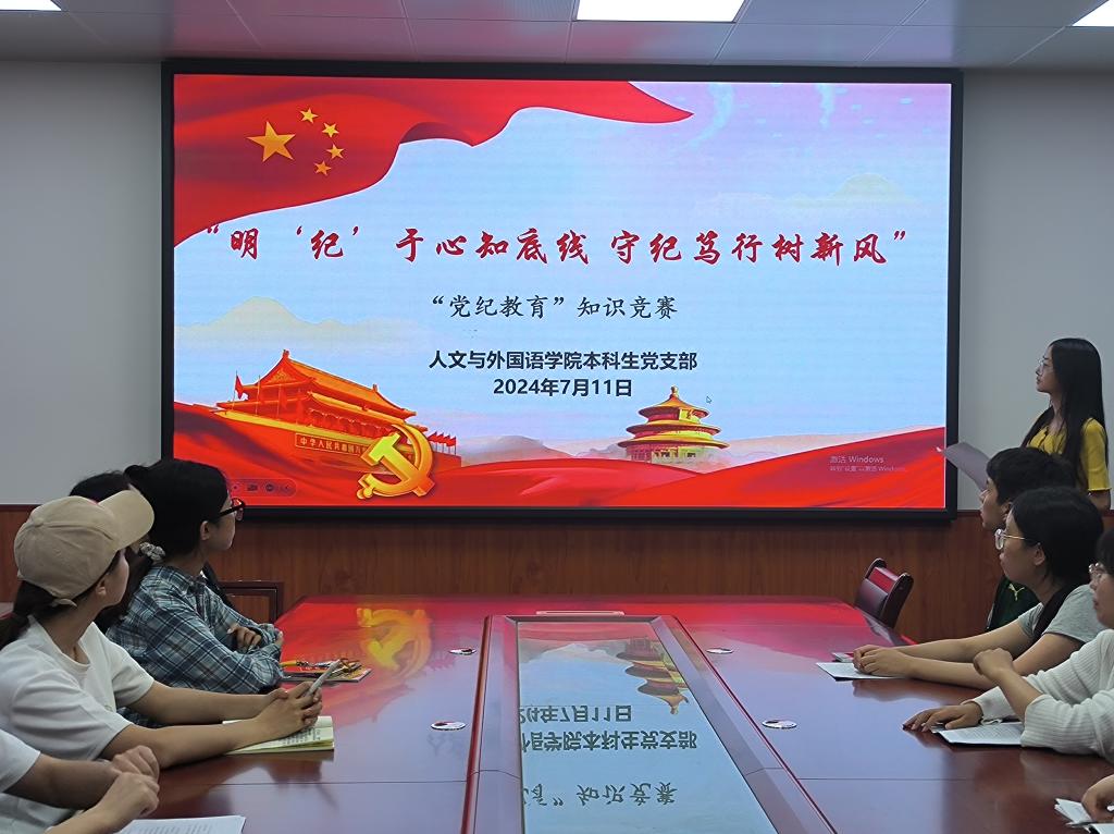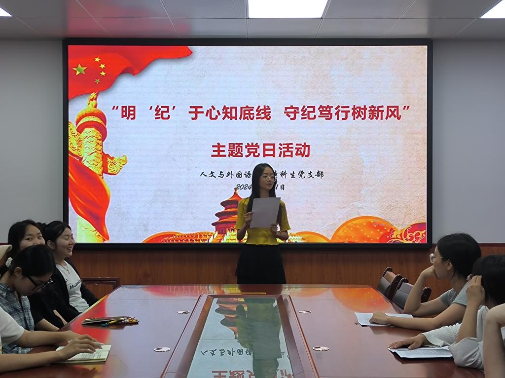 为深入学习贯彻习近平总书记关于加强党的纪律教育的重要论述,太阳集团tyc4633本科生党支部于7月11日在骊山校园2号教学楼226会议室召开“明‘纪’于心知底线,守纪笃行树新风”主题党日活动,支部全体党员及入党积极分子代表参加,支部书记李银亮主持。