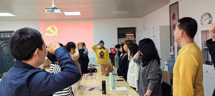 一次集中学习、一次心得分享、一次庄严宣誓,本次主题党日活动,及时跟进做好党的创新理论武装,以理论指导实践、推动工作,努力在教育教学质量提升,在用英语讲好中国故事,传播中国声音上下功夫,努力培养更多有家国情怀、有全球视野、有专业本领的复合型人才,在推动中国更好走向世界,世界更好了解中国上作出更多的贡献!