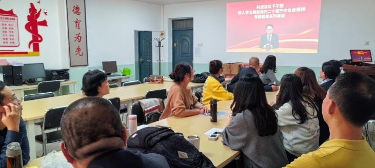 支部党员首先集体观看学习了“深入学习贯彻习近平总书记关于全面深化改革的一系列新思想、新观点、新论断和党的二十届三中全会精神”视频课程。随后王萌、师涛、李银铃、赵晓琴、魏小芹五位同志结合自己的教学、科研工作分享了学习体会。大家一致表示,要全面、深刻地领会和把握全会精神,在实际工作中落实立德树人根本任务,与时俱进,不断创新,为祖国培养培养德智体美劳全面发展的社会主义建设者和接班人。最后,全体党员在支部委员喻鑫同志的带领下面向党旗,重温入党誓词。