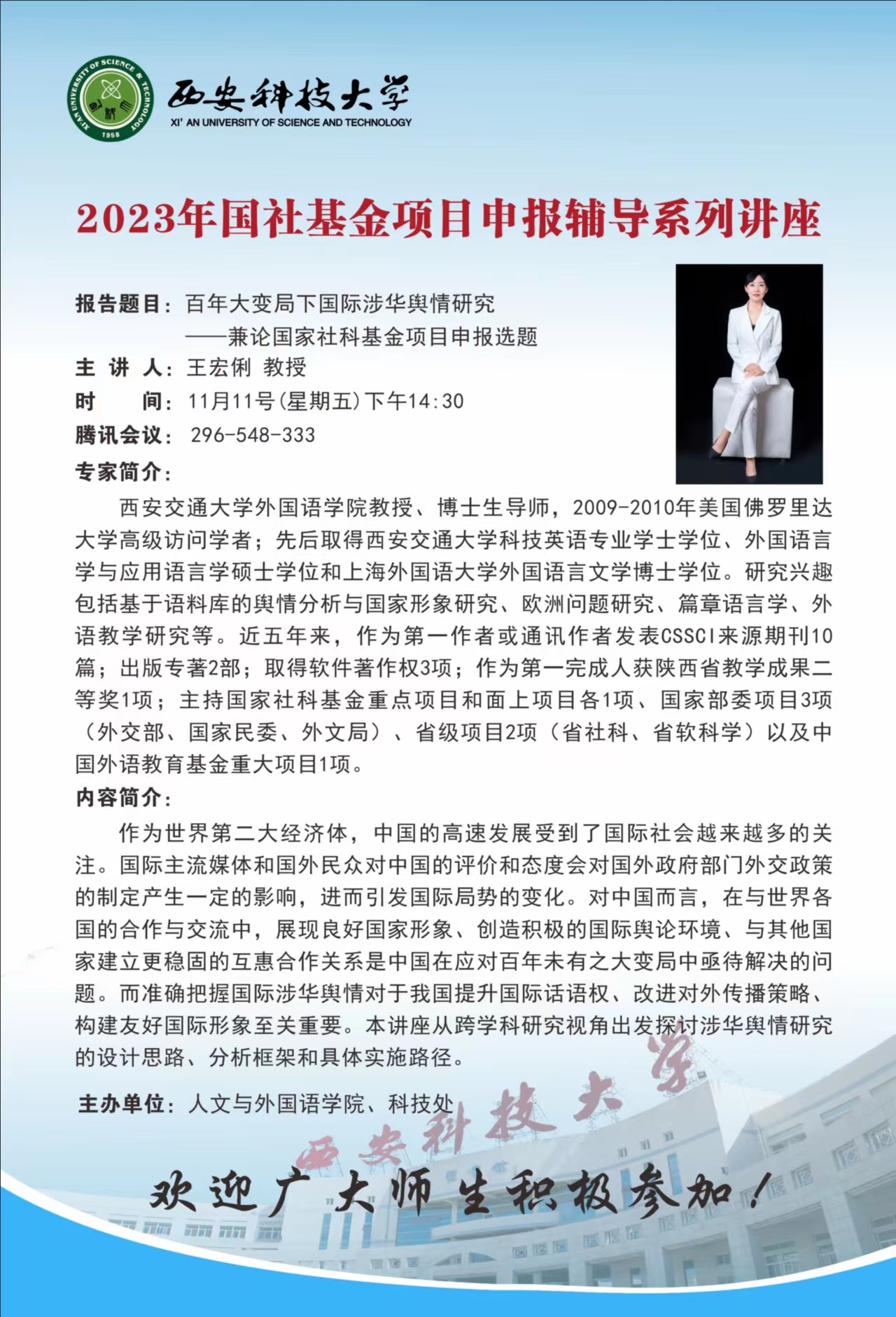 请学院副教授以上职称、博士学历、年龄35岁及以下等有申报国家社科基金资格的教师按时参会,欢迎感兴趣的老师们积极参会。