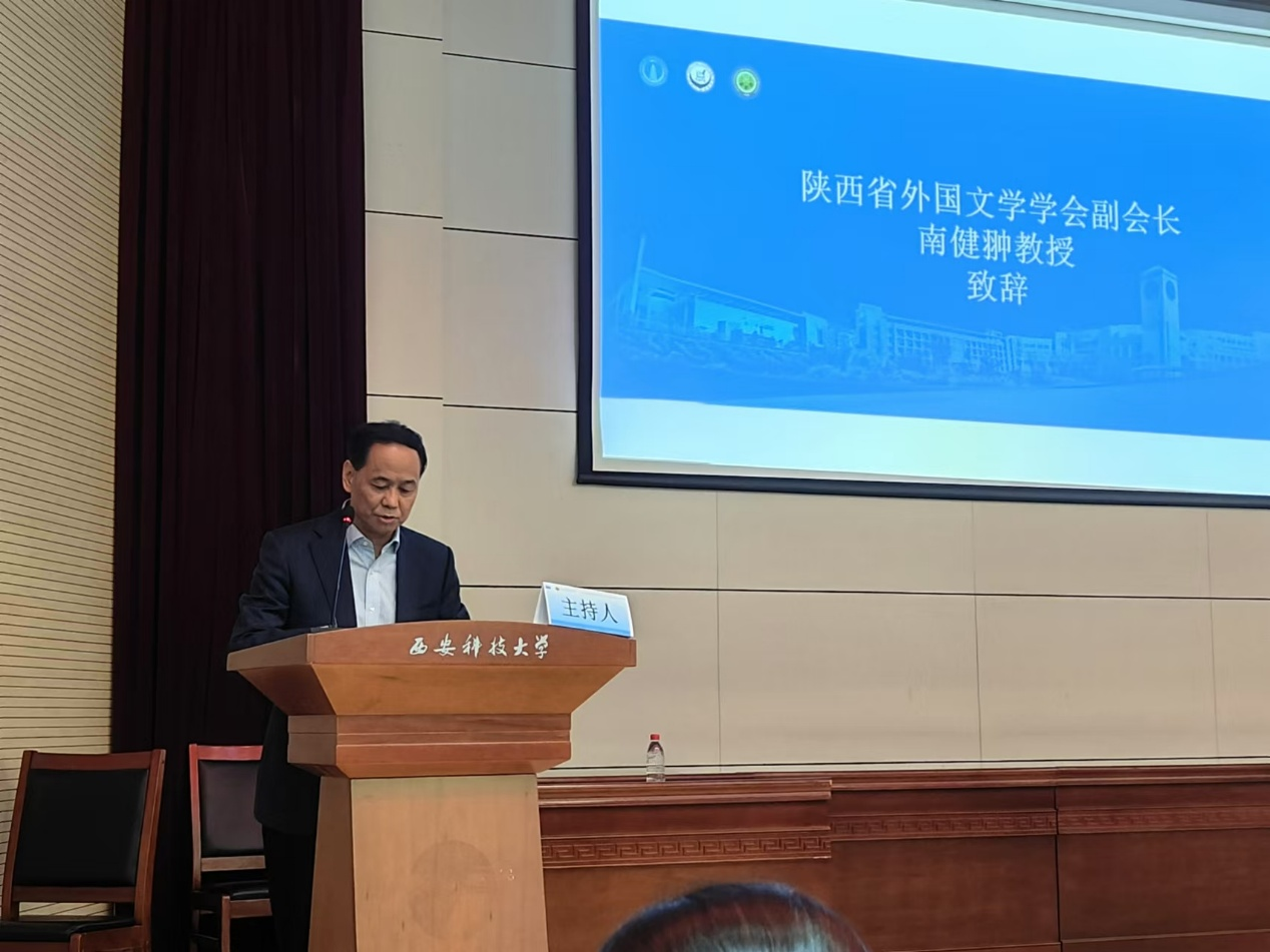 第一场主旨报告由西安科技大学张燕清教授主持。主讲嘉宾北京外国语大学陶家俊教授以“论埃兹拉·庞德《神州集》和《七湖诗章》中的神州生命精神架构”为题目,以德国文化哲学家奥斯瓦尔德·斯宾格勒的文化生命有机论为理论基础,从跨文化视角聚焦英美现代派诗人埃兹拉·庞德《神州集》和《七湖诗章》中以诗显诗跨文化诗艺构造主旨统摄下神州生命的现世唯美精神架构、道家精神架构、禅宗和儒家精神架构。发掘了庞德对神州文明精神生命跨文化移植的三条路径:形诗、音诗和意诗的融通;以汉字和汉诗为灵感的异位时空重叠、并列、参照或融合;对画与诗,诗、思想与历史,道家、佛教和儒家,古与今、西方与东方界线的僭越。得出结论:庞德跨文化诗艺构造后的神州生命形态所浓缩的原初象征表现出以“道”为根源,兼容世俗情爱关怀、宇宙生命关怀、禅宗心灵救赎关怀和儒家圣治文明理想的复合特征。